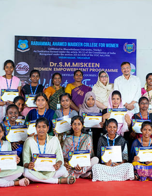 Rabiammal Ahamed Maideen College for Women was founded in July 1999 in Tiruvarur by Dr. S.M. Miskeen, and it is affiliated to Bharathidasan University, Tiruchirappalli. Our college, that embraces the spirit of our nation's ideological identity "Unity in Diversity"has evolved tremendously in Value, Vision, and Volume over the past quarter century.